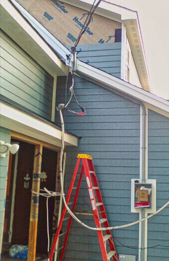 Fixing non-compliant or unsafe points of attachment, including bracket replacements, height adjustments, and proper weatherhead installation to prevent weather ingress.